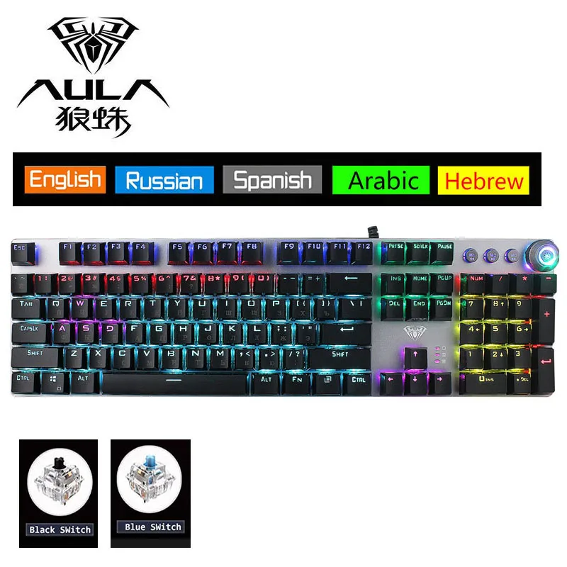 Good Product AULA Rotating Macro Backlit Mechanical Keyboard Blue Red Black Switch 104 Keys LED Computer Gamer G